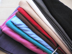 フライス(茶色、ターコイズ、ベージュ、紫)、強撚ニット