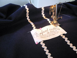 とりあえず、何も飾り付けないのは寂しかったのでタグとリックラックを縫い付けました。