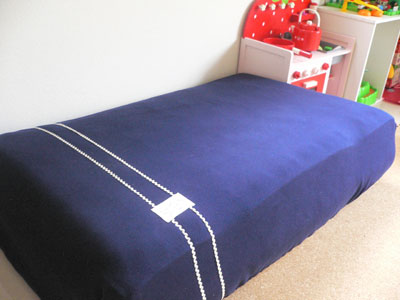 クッション部分は、布が足りなかったので同じ布が届いてからまた作成です。