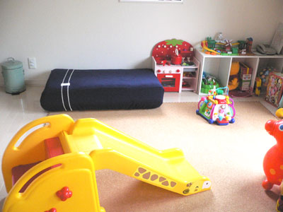 子供部屋は、将来二つに区切る予定で、10.5畳をチビの遊びコーナーと
